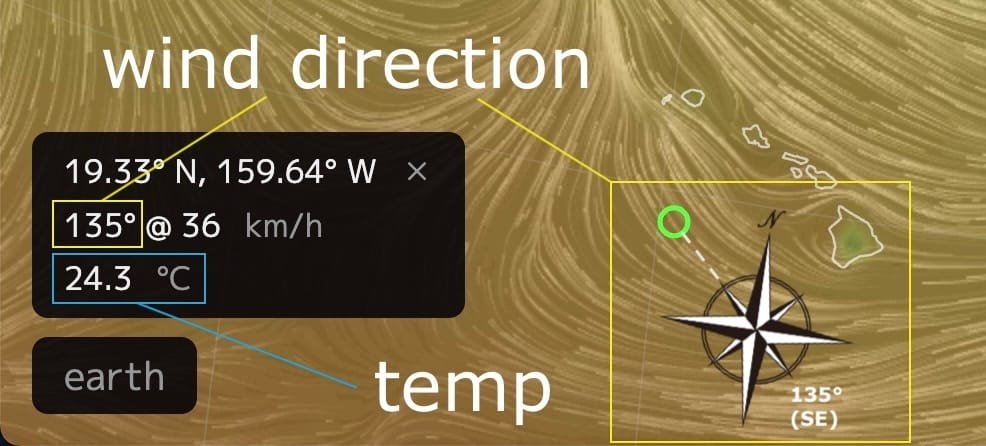As a side note, people often ask what the "degrees" next to the wind speed means. Not to be confused with temperature or geographic coordinates, this number is the direction of the wind.